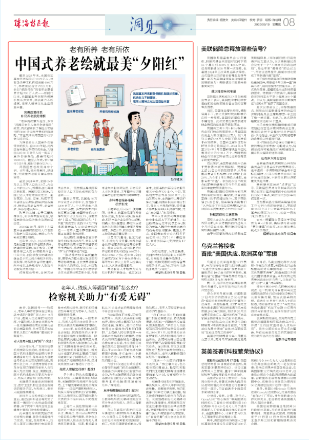 近年来,中办、国办印发意见制定国家基本养老服务清单,明确物质帮助、照护服务、关爱服务等三大类16项服务内容;中共中央、国务院发文明确提出健全县乡村三级养老服务网络;民政部、财政部联合印发通知,向中度以上失能老年人发放养老服务消费补贴……