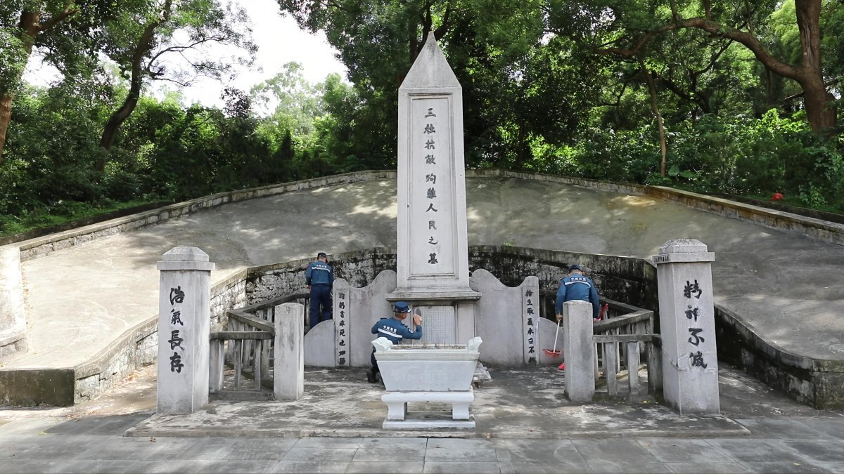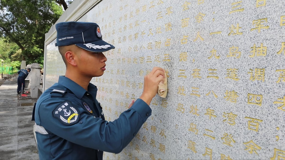 广东珠海海警局执法员们在三灶岛“三•一三”遇难同胞纪念碑前整齐列队,脱帽肃立,默哀致敬,表达对革命先烈、遇难同胞的深深哀思。
