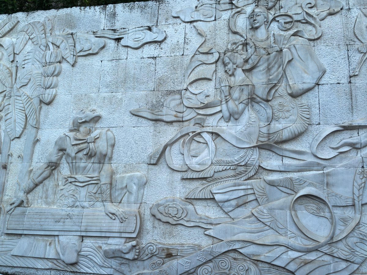 横琴岛的名字从何而来?这个充满诗意的地名背后,藏着关于仙女的浪漫传说,在横琴红旗村文化广场上,一块长达54米的汉白玉壁雕将这个传说娓娓道来,它不仅成为了承载横琴人文情怀的艺术载体,同时也记录着一段筚路蓝缕的建设往事。