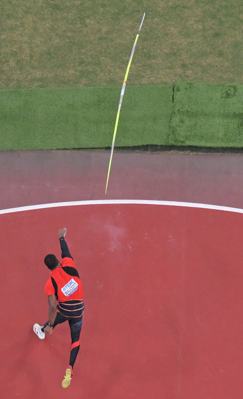 男子标枪决赛中,来自特立尼达和多巴哥的32岁老将沃尔科特以88米16的成绩夺冠,继2012年伦敦奥运会夺金之后再次在国际大赛中登上最高领奖台。格林纳达的两届世锦赛冠军皮特斯以87米38排名第二。铜牌归属美国的汤普森。