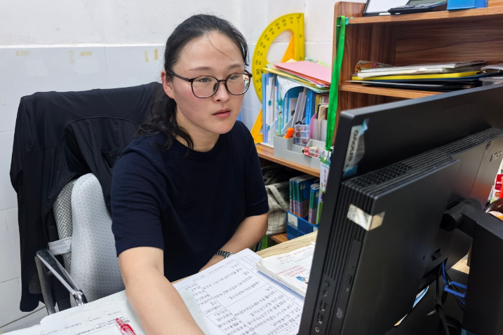 印象最深的是——讲评学生的作文。他批阅学生习作,一边批注,一边写到自己的讲义上。每次讲评,他都是捧着厚厚的一叠稿纸在那里点评。有时,他那老花镜都滑落到鼻尖上了,颇有点像叶圣陶先生写的《多收了三五斗》中的米行账房先生。