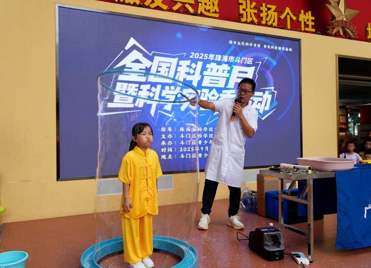 9月20日,斗门区青少年宫内“哇”声一片、气氛热烈,由珠海市科学技术协会指导、斗门区科学技术协会主办、斗门区青少年宫承办的2025年斗门区全国科普月暨科学实验秀活动在此举办,近300名青少年儿童齐聚现场,沉浸式体验科普魅力。