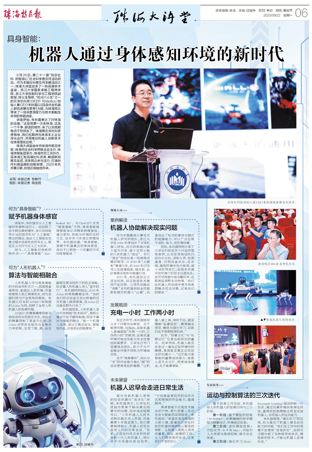 具身智能不仅是技术融合的产物,更代表着人类对生命与智能的深层探索。朱秋国说:“希望未来在珠海的大街小巷,能看到云深处科技的机器狗提供贴心服务的身影。让机器人帮助人类完成重复、危险、枯燥的工作,让人们拥有美好生活,这是我们不变的初心。”