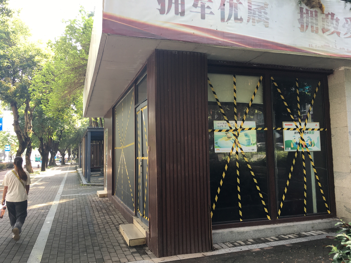 上午,记者沿一楼商圈绕行一周,却发现至少有三家餐饮门店因在门前设立服务区,妨碍到行人躲雨和通行。