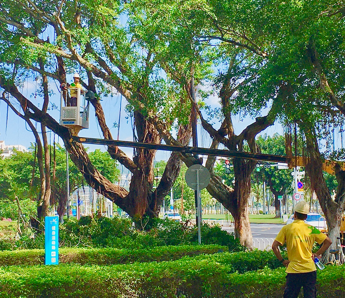 另外,乐园路、情侣中路栽种的大型行道树,如大王椰、小叶榕等,因枝叶易坠落,成为当下市民关注对象。记者沿路行走时,就发现有厚重叶片掉落下来。而在附近面海一侧,养护单位已着手对大型树木进行修剪,以防台风、浪潮影响期间倒伏、坠落,危及人员安全。