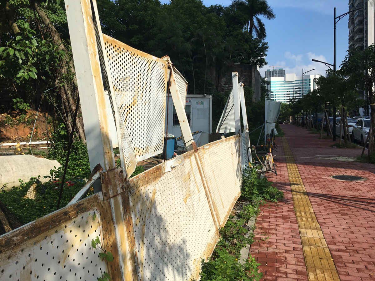 在香洲内陆,也有一些区域存在防风隐患。按报料线索,记者来到文洋路交人民东路路口,看到一段围蔽设施挡板有松脱风险,一些板材甚至已经垂落到地上,稍有来风便咣当作响,随时有倒压可能。行人表示,这段设施破败不堪但一直没人清理,倘若台风来临被吹飞,后果不堪设想。