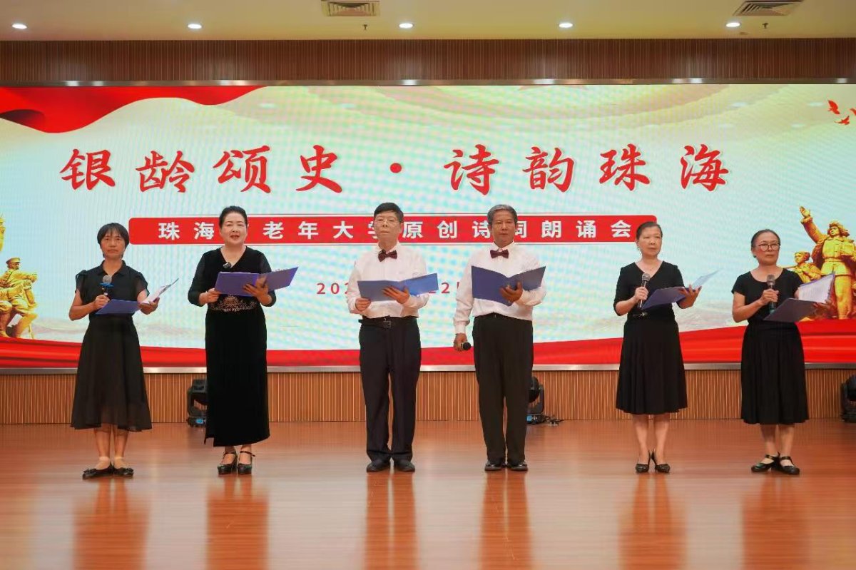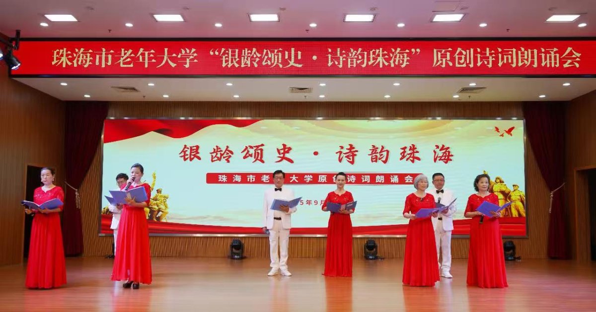 9月22日,市老年大学在多功能厅举办“银龄颂史・诗韵珠海”原创诗词朗诵会,该活动是市老年大学银龄大思政体系建设系列活动之一,旨在纪念中国人民抗日战争暨世界反法西斯战争胜利80周年,传承红色基因,丰富老年学员精神文化生活。