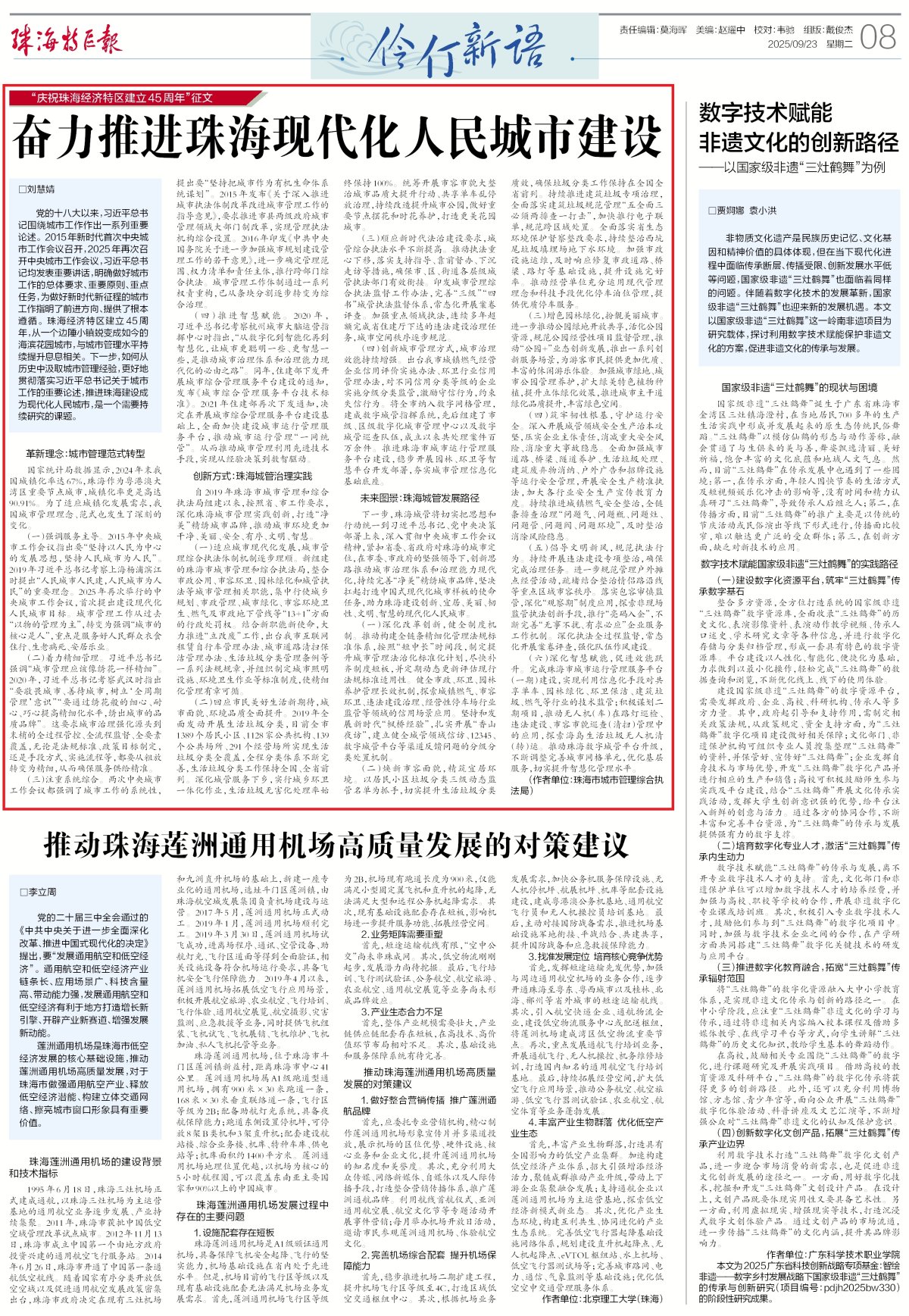 党的十八大以来,习近平总书记围绕城市工作作出一系列重要论述。2015年新时代首次中央城市工作会议召开,2025年再次召开中央城市工作会议,习近平总书记均发表重要讲话,明确做好城市工作的总体要求、重要原则、重点任务,为做好新时代新征程的城市工作指明了前进方向、提供了根本遵循。珠海经济特区建立45周年,从一个边陲小镇蜕变成如今的海滨花园城市,与城市管理水平持续提升息息相关。下一步,如何从历史中汲取城市管理经验,更好地贯彻落实习近平总书记关于城市工作的重要论述,推进珠海建设成为现代化人民城市,是一个需要持续研究的课题。