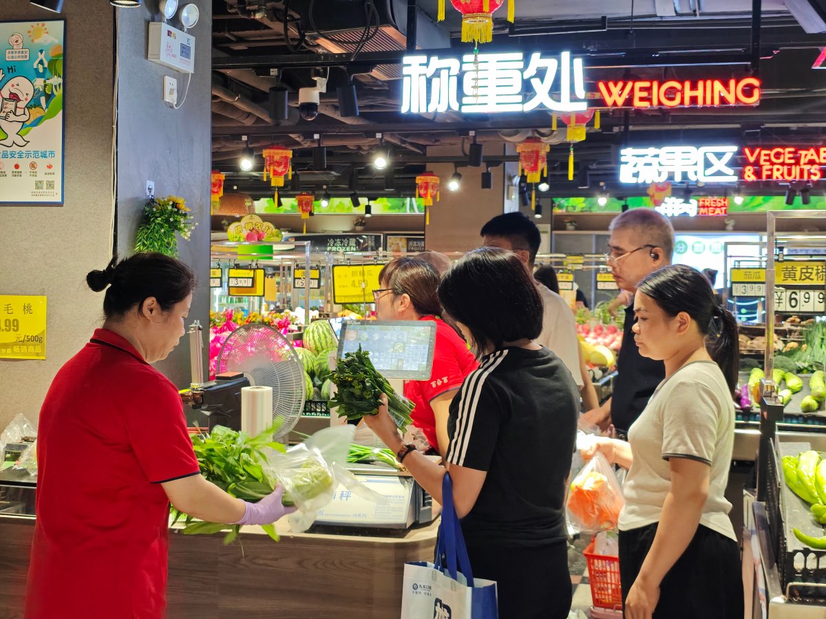 记者当天上午在联社直属企业百分百商业公司位于凤凰北路的门店看到,货架上各类包装食品、肉菜储备丰富,工作人员认真协助市民完成称重打包提高采购效率。记者了解到,为确保应急响应迅速高效,百分百商业公司提前做好准备,加大民生物资储备。除了调配了应急配送车辆,组建由骨干员工组成的应急配送队伍,还制定了详细的物资调配预案,确保在应急指令下达后,能在1小时内完成物资集结,2小时内将关键区域所需应急物资送达指定地点。百分百商业公司充分发挥供销系统 “点多、线密、面广” 的网络优势,加强与核心供应商的实时沟通协调,建立“需求-调配-运输”快速响应机制,用贴心服务解决群众实际困难。