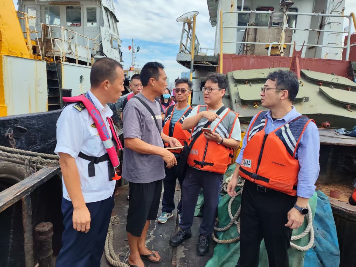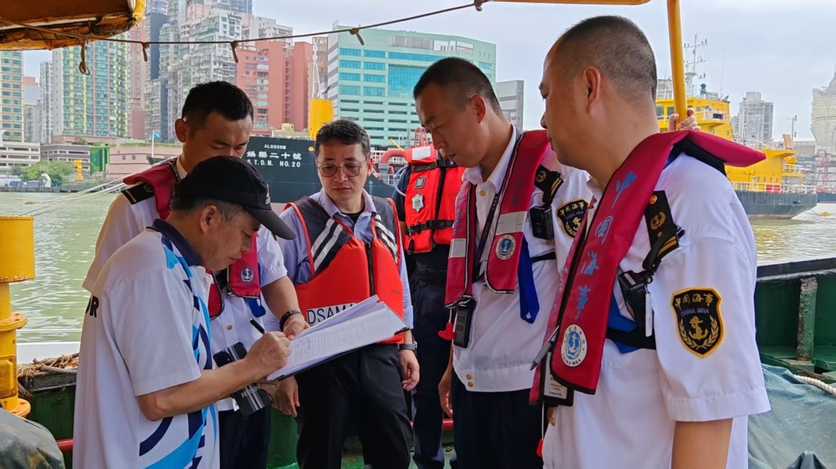 为提升台风防御效率,粤澳涉水部门紧密协作,联合对湾仔-澳门内港长期停航船舶开展安全提醒,要求船方加固锚链并及时撤离船上人员。珠海海事局协助澳门籍施工船、砂石船等船舶回港避风;同时开通绿色通道,简化澳门船舶检查手续,进一步提升船舶回港避风效率。