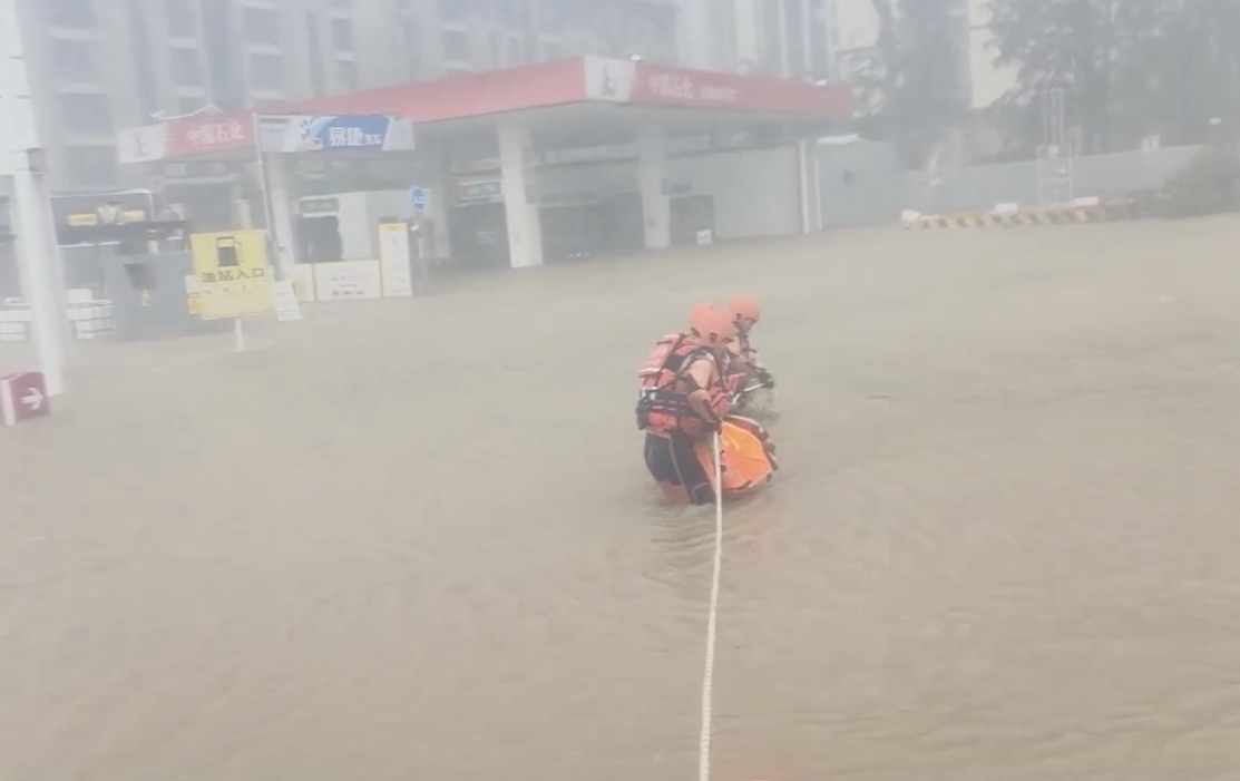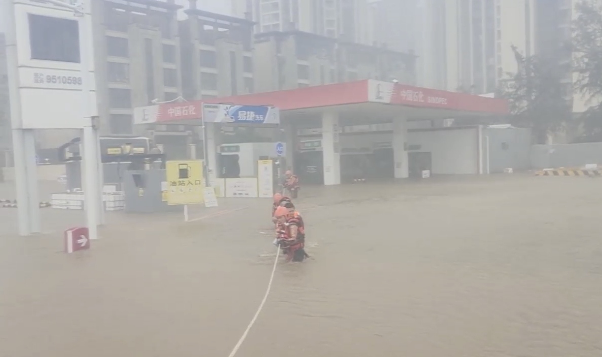 9月24日11时50分许,受“桦加沙”台风强降雨影响,位于金湾区三灶镇的一加油站因地势较低,积水快速上涨,3名工作人员被困站内,情况危急。辖区西湖消防救援站迅速出动1辆消防车、6名经验丰富的消防救援人员,携带水域救援装备,赶赴现场处置。