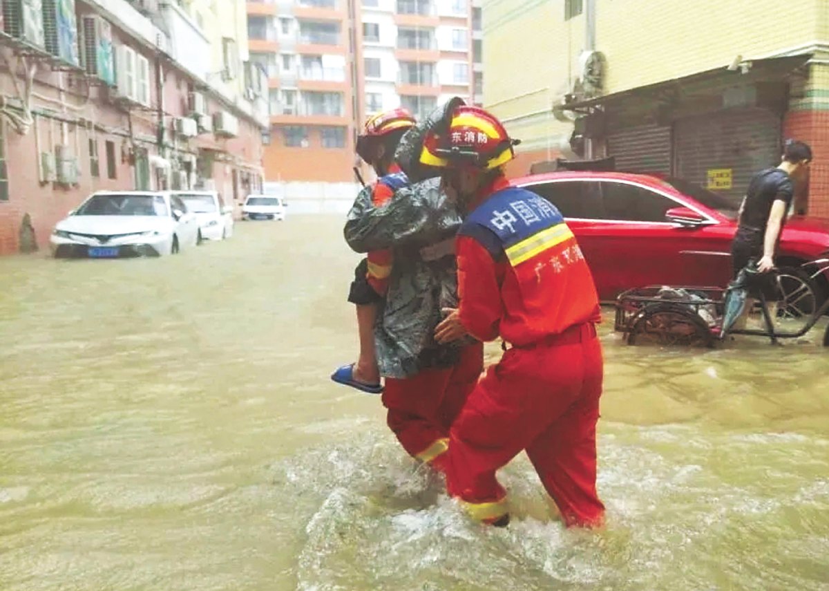 珠海消防队员们化身风雨中的守护者,让暖心的救援故事一个接一个地上演:金湾区三灶镇一名老人突然发病,队员们与医护人员紧密配合,10分钟内就开辟出生命通道;斗门区井岸镇北澳村商铺卷帘门因积水故障,队员们巧妙撬开门户,护送店主安全返家……台风来袭期间,消防队出动36辆救援车和180名队员,成功帮助66位市民脱离险境。