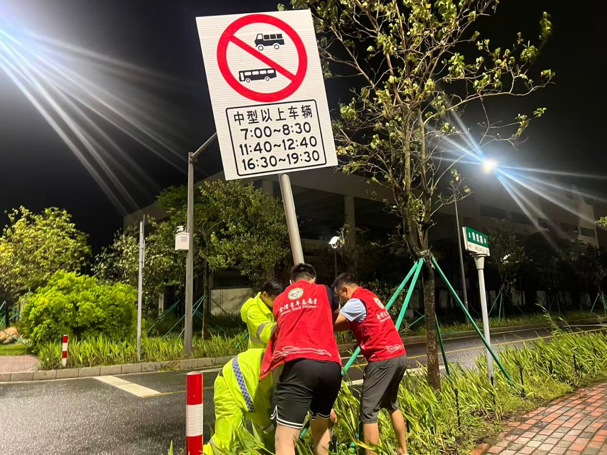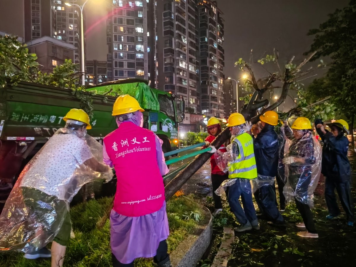 香洲区各街道青年突击队立即响应,迅速开展道路清障工作。在翠香街道、前山街道、梅华街道、狮山街道等地,由外卖小哥、社区青年等组成的志愿队伍连夜清理倒伏树木和断枝杂物,保障道路畅通。