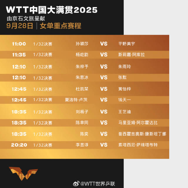 孙颖莎、王楚钦首轮遭遇硬仗!WTT中国大满贯正赛首日赛程→