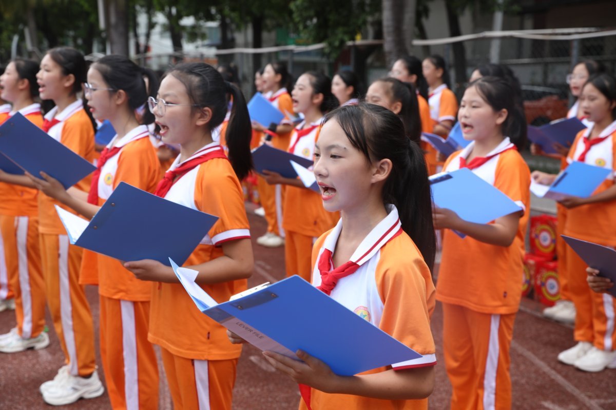 活动中,六年级孩子们表演了诗朗诵《红领巾礼赞新中国》,铿锵有力的朗诵深切表达了对祖国的热爱与赞美。现场,主办方代表为全体师生赠送了中秋月饼。全体师生仰望五星红旗合唱《歌唱祖国》,激昂的歌声回荡在校园上空,将活动推向高潮。嘉宾们还与师生合影留念,共同录制祝福视频,为这个特殊的日子留下珍贵记忆。