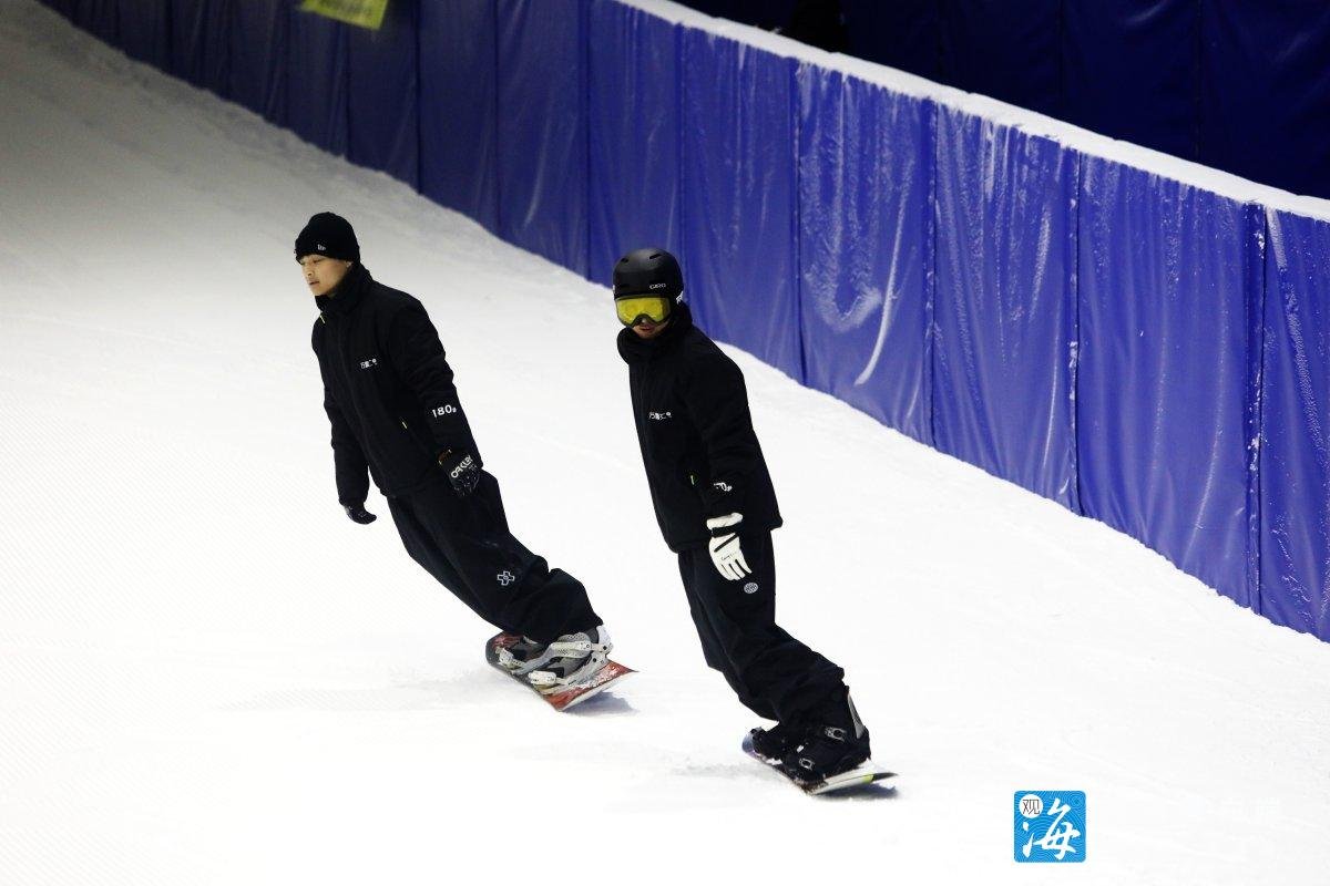据悉,万雪汇规划了专业滑雪区与趣味娱雪区两大核心区域,其中专业滑雪区的190米雪道按坡度科学划分,既设有适合零基础新手的初级练习区,也提供了能满足进阶爱好者挑战的中级雪道,为不同水平的滑雪者带来安全且刺激的畅滑体验。雪道两侧印有雪山图案的蓝色墙绘,增强了冰雪场景的真实感。记者观察到,初学者在平缓区域练习平衡,进阶者则尝试流畅转弯,雪板划过雪面的簌簌声清晰可闻。