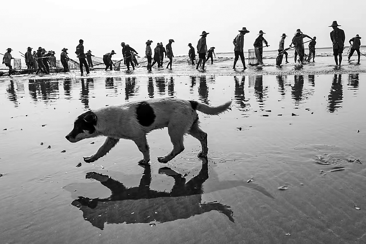 “起渔咯!”渔民们吆喝着,将一筐筐的鱼虾蟹贝搬上岸。筐里的鱼虾银光闪闪、活蹦乱跳。突然,一尾硇洲族大黄鱼从筐中跃出,在水泥地板上蹦跶抽搐。那大黄鱼足有两尺长,鱼鳃还在微微翕动,带着刚离水的鲜活气。渔民“八爪聪”蹲下身,与大黄鱼对视。“海里来的总是带着三分野性,让它再蹦跶一会儿吧!”