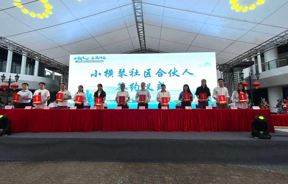 活动当日下午,小横琴社区合伙人签约仪式同步举行。小横琴社区、澳门街坊会联合总会广东办事处与11名社区合伙人代表齐聚一堂,在合作区领导及琴澳居民的见证下,共同签署战略合作协议,标志着琴澳社区治理创新合作迈入实质性推进阶段。本次签约以“琴澳同心、资源共享,服务共创、合作共赢”为理念,旨在整合两地优质资源,创新社区服务模式,提升公共服务水平,携手打造琴澳社区治理创新示范平台。
