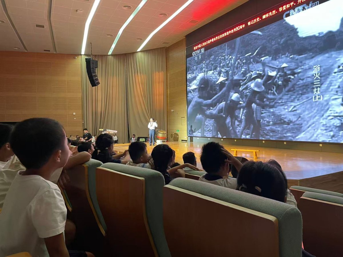 随后,队伍前往至金山实验学校报告厅。在这里,大家观看了由区社科联、教育局联合推出的抗战主题宣演《铭记》。海澄小学和中兴小学的同学们通过精彩的情景剧,生动演绎了三灶群众保家卫国的光荣故事。紧接着,由区政协委员刘昌言带来讲座《三灶1938》,以其团队最新挖掘的史料,深入揭示了华南抗战的微观历史细节,引人深思,现场掌声不断,表达了对历史研究者深深的敬意。