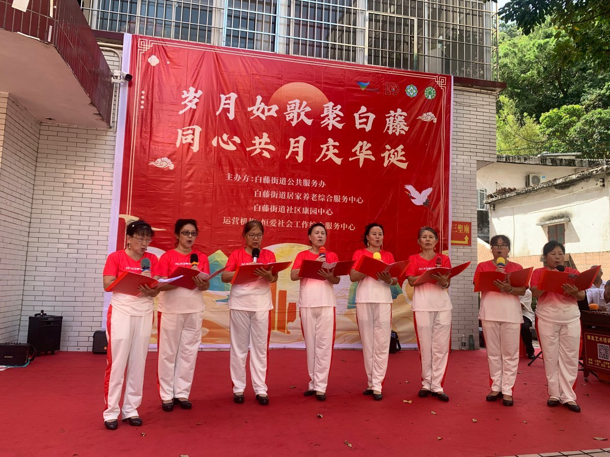 活动在大合唱《祝福祖国》《共筑中国梦》中拉开序幕。白藤街道居家养老综合服务中心的长者艺术团成员们精神矍铄、歌声嘹亮,瞬间点燃了大家的爱国热情。深情款款的《爱恋》演唱、优雅曼妙的《天下最美·花舞人间》时装秀、行云流水的《杨氏42式太极拳》表演,以及独唱《战士歌唱毛主席》,无不展现着长者们老有所为、老有所乐的精神风貌。诗歌朗诵《祖国颂》字字铿锵,三句半《颂祖国》句句诙谐,他们用不同的艺术形式,共同诉说着对党、对祖国的无限感恩之情。