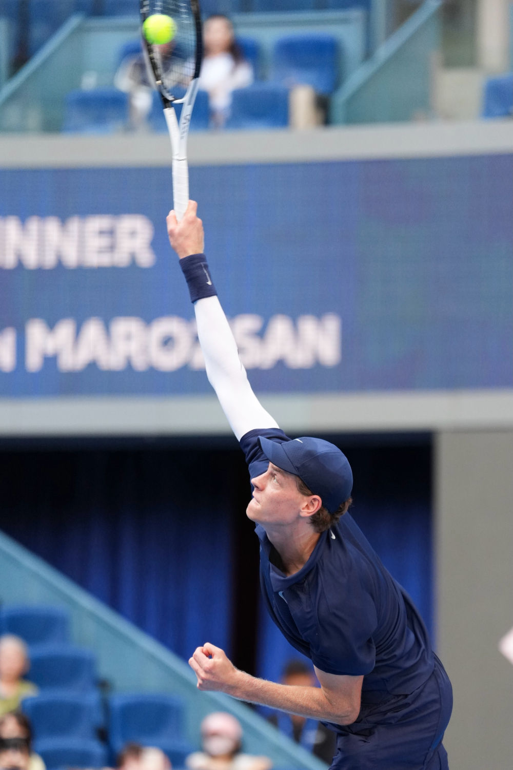 男单方面,世界排名第二的意大利名将辛纳在四分之一决赛中以6:1、7:5战胜匈牙利选手马洛桑,晋级半决赛。首盘比赛,辛纳迅速进入状态,马洛桑首局保发后,辛纳连胜6局以6:1先下一城。马洛桑在第二盘提升了发球质量,前八局双方战至4:4平。关键的第九局,马洛桑率先破发,5:4领先来到发球胜盘局。但辛纳在第10局送出“lovegame”(零封对手赢下一局)回破,将比分扳平。辛纳在成功保发后,再度送出“lovegame”完成破发,直落两盘晋级半决赛。