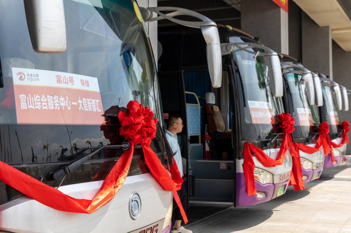 随着富山工业园快速发展,园区总人数已突破6万人。为有效缓解园区企业员工节假日“进城难”,富山工业园管委会委托新斗金引入“富山号”模式,由专业公司提供大型客车配套租赁服务,打造便捷、绿色、智慧的交通体系。