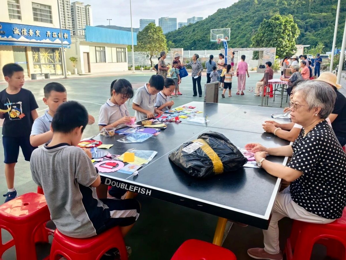 “巧手迎双节”摊位前,居民们正埋头鼓捣自己的国庆主题DIY贴画和玲珑鱼灯笼。大家天马行空,贴画在手里变得独一无二;灵动的鱼灯笼在巧手下活灵活现,为中秋佳节增添了浓厚的艺术氛围与节日韵味。