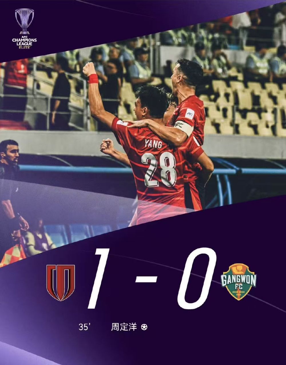 30日晚,中超球队成都蓉城迎来队史首个亚冠精英联赛主场,对阵韩国球队江原FC。依靠上半时队长周定洋的凌空扫射,成都蓉城1:0力克对手,收获队史首场亚冠精英联赛胜利,这也是本赛季中超球队在亚冠正赛的首胜。