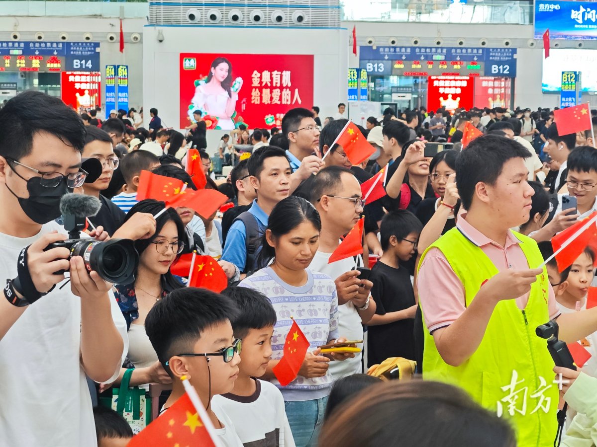 记者从国铁广州局了解到,今年国庆假期恰逢中秋节,“双节”叠加下客流大幅增加。国庆节当天,国铁广州局迎来客流最高峰,预计发送旅客355万人次,较去年同期增加38.5万人次,增幅达12.2%,较“五一”最高日(346.9万次)多出8.1万人次,客流预计创历史单日新高。