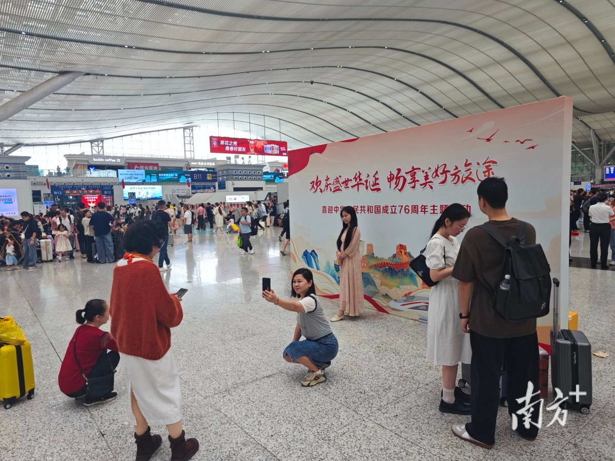 据国铁广州局客运部相关负责人介绍,国庆中秋假期首日,中短途客流呈现以广州、深圳、长沙等大城市为中心,向周边城镇辐射的趋势,长途客流则主要面向北京、上海、武汉等热门方向。从国铁广州局各车站客流来看,广州南、深圳北、长沙南等主要火车站的出城客流高度集中,其中广州南站预计发送旅客52万人次,突破了此前47.8万人次的历史高点。