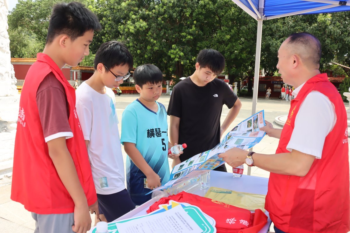 国庆假期,珠海旅游景区人流众多,吸引了大量省内外游客前来观展,为全面展示珠海城市旅游的文明风尚,为前来珠海旅游、观展的游客提供高水平的旅游咨询服务,现场,20名志愿者以举牌、派发文明旅游宣传手册、介绍珠海旅游地图的方式,向市民游客介绍宣传珠海旅游景点,解答游客旅游咨询,倡议游客做文明的传播者、践行者。