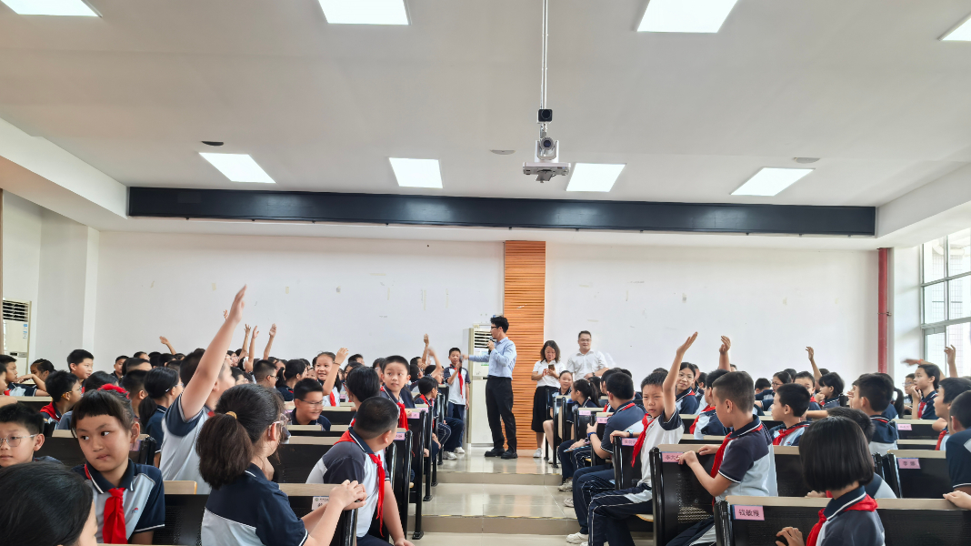 在国防教育讲座环节,省优秀退役大学生士兵征兵宣讲团成员、珠海市青年讲师团成员、珠海科技学院2022级退役大学生士兵杜新浩结合自己戍守边疆的经历,以“雪域边关刻忠魂·薪火相传铸国防”为题,从边防战士在极端恶劣环境下的戍边生活——在冰天雪地中的日常巡逻,到戍边将士“宁可向前十步死,绝不后退半步生”的铮铮誓言的深情讲述,让在场的少先队员们真切体会到和平的来之不易,更深刻感受到边防军人们用生命守护国门的忠诚与担当。