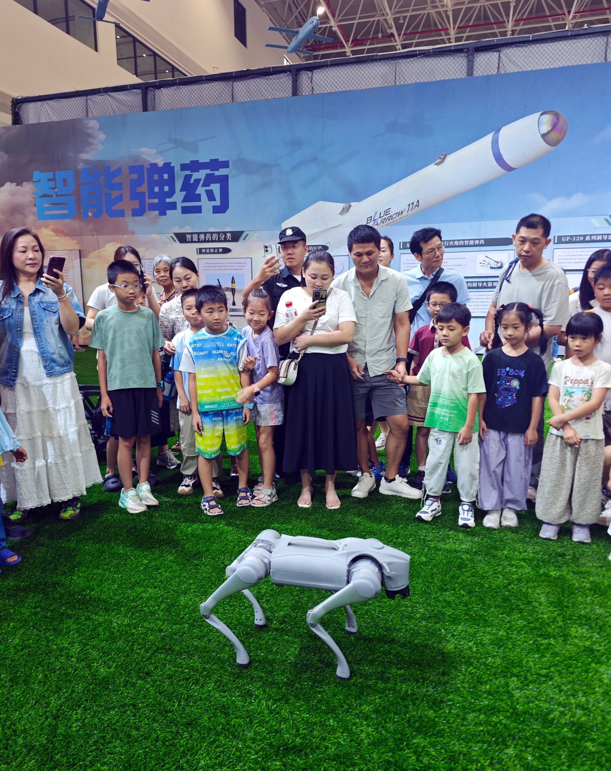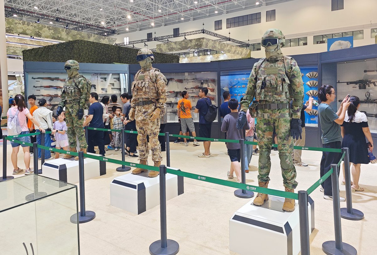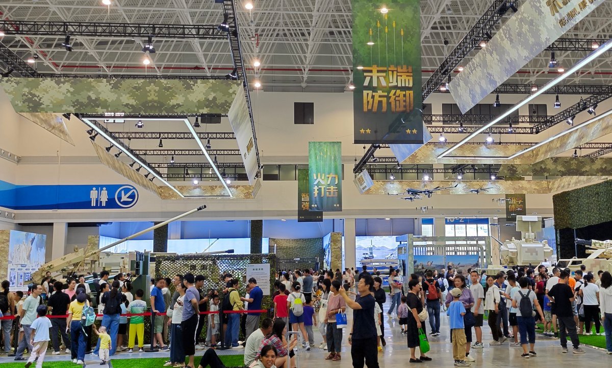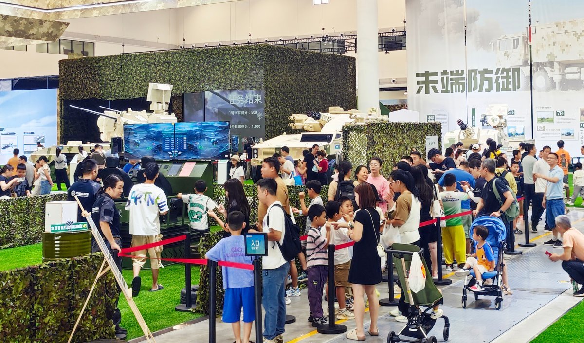 场馆停车场省外车牌云集,场馆内一家老少“叹空调”舒适游览的游客众多。记者注意到不少随家长来的小游客明显“有备而来”,手上的小夹板放满了网上查到的资料,打算在场馆里逐一打卡装备“真身”。中国兵器馆内各种互动体验项目吸引着游客排队打卡。坦克模拟器上,大朋友和小朋友们现场临时组队,3个人一组扮演车长、炮手、装填手。虽然游客们来自天南海北,但因“永不落幕的中国航展”结缘,现场参与模拟对战不亦乐乎,他们也身临其境般感受到战场的激烈和国防科技的重要性。
