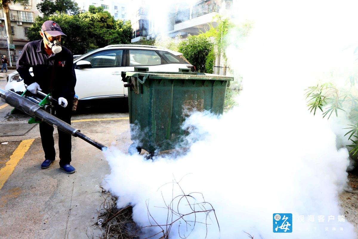 根据工作安排,珠海于10月3日集中开展爱国卫生专项行动。记者在行动一线现场看到,无论是社区居民还是相关场所工作人员,大家都行动起来,下功夫清除蚊媒孳生地、杀灭成蚊、强化环境卫生整治,切实阻断病毒传播渠道。