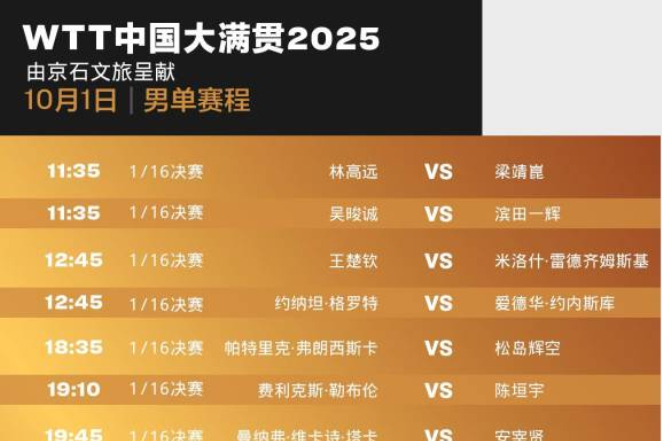 孙颖莎迎战陈幸同、林诗栋/王楚钦男双冲冠,WTT中国大满贯今日赛程→