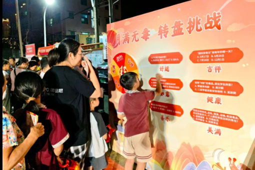 天上月圆,人间团圆。一轮圆月寄托着人们思念故乡、思念亲人之情,也寄托着期盼丰收和幸福之意,天上捧出一轮圆月,地上捧出无数花灯,天上月与地上灯交相辉映,良辰美景,丰悦可人。