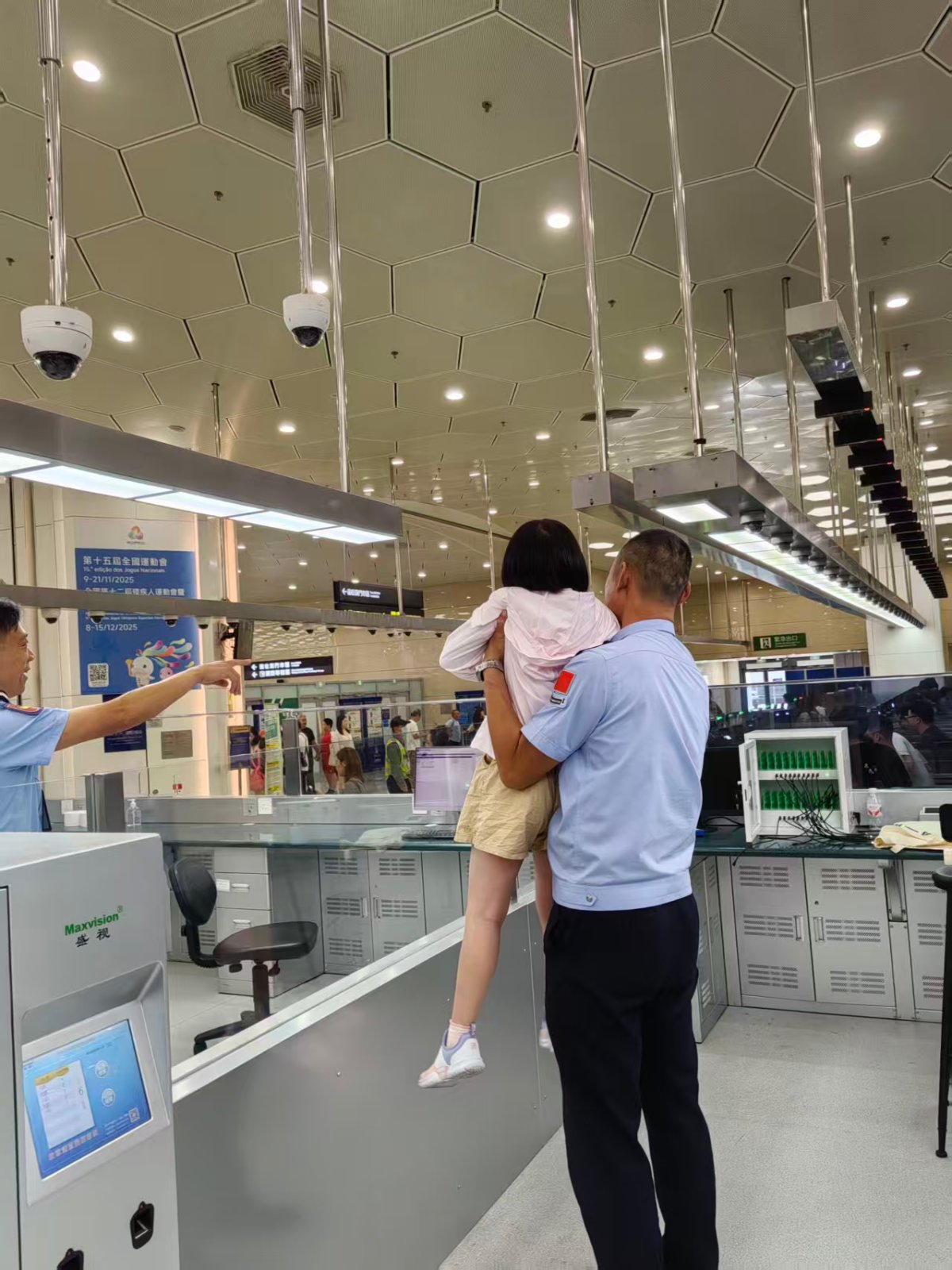 “看到妈妈了!”当女孩挥舞着小手欢呼时,王栋的目光紧紧追随着她手指的方向,直到那位母亲慌忙奔回。待两地边检快速为女孩办完手续、母女相拥时,他又默默转身,重新汇入守护秩序的人流中。