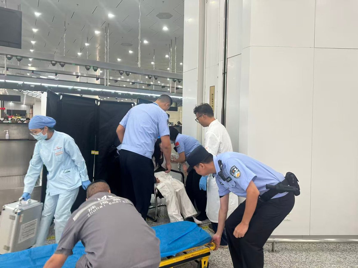 同日晚7时许,旅检大厅正值高峰,一名在澳门就读的女大学生经合作快捷通道入境后,突然眼前一黑、向前倾倒。执勤民警曾小娟几乎是本能地箭步冲上前,与同事一同稳稳扶住她,并迅速搬来座椅让女孩坐下。见女孩呼吸急促、手脚痉挛,曾小娟俯身贴近她耳边耐心询问,得知其患有焦虑症且随身携带药物后,立即上报并呼叫120,同时细致地协助女孩服下应急药。