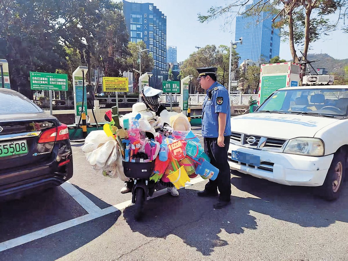 10月2日中午,迎宾路客流高峰时,一名游客赶赴口岸时碰倒行李箱,物品散落。刘小芳立刻放下垃圾夹走上前,一边帮忙捡拾,一边安抚游客情绪,待游客顺利离开,她又投入清扫。12年环卫工作中,帮老人找路、提醒游客护物、捡失物是常事,她总说:“路要扫干净,更要让人暖心。”这个国庆中秋假期,无数如她一样的“守关人”,用坚守擦亮城市文明底色,让每条通往远方的路都满是温暖。