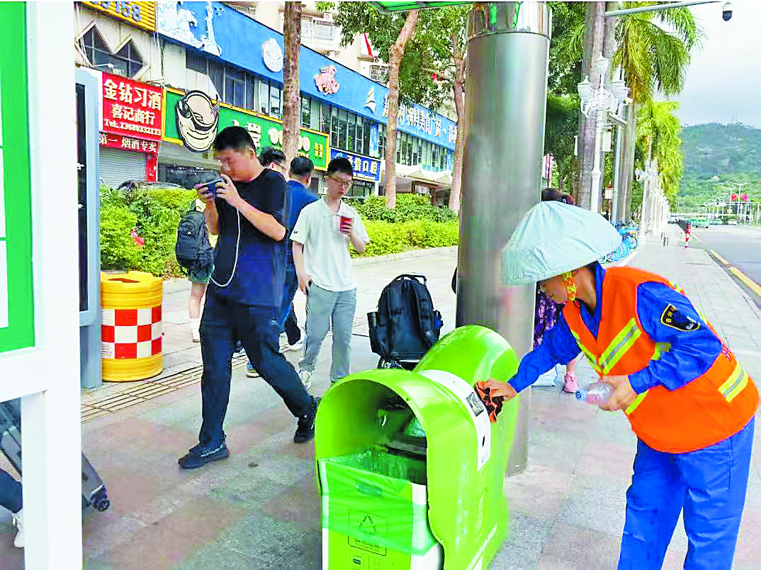 “越是过节,我们越不能缺位。”刘小芳擦汗时,扫帚仍未停。国庆前三天,拱北口岸珠澳出入境人员超115万人次,迎宾路人流较平日翻三倍,垃圾量暴涨5倍,她一天弯腰上百次,装近20袋垃圾。为保路面整洁,她和同事“两班倒”,从凌晨4点忙到深夜12点,午餐仅在路边快速吃几口盒饭,“垃圾多堆一分钟,既影响游客心情,还可能耽误大家去口岸。”
