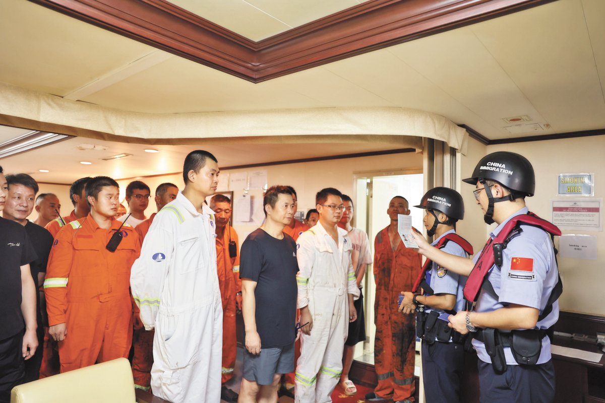 “欢迎来到中国!”民警邓翌君以流利英语问候外籍船员。针对船员换班需求,边检站提前启动应急预案,她与同事高效办理人证对照、信息录入等手续,指引不熟悉流程的船员,不到半小时便完成所有入境手续。一位船员感慨道:“太感谢了!我们知道这几天是中国的国庆中秋假期,又遇到了台风,没想到你们的服务如此迅速、专业,还这么有人情味,这让我们感受到了中国友好、安全、高效。”