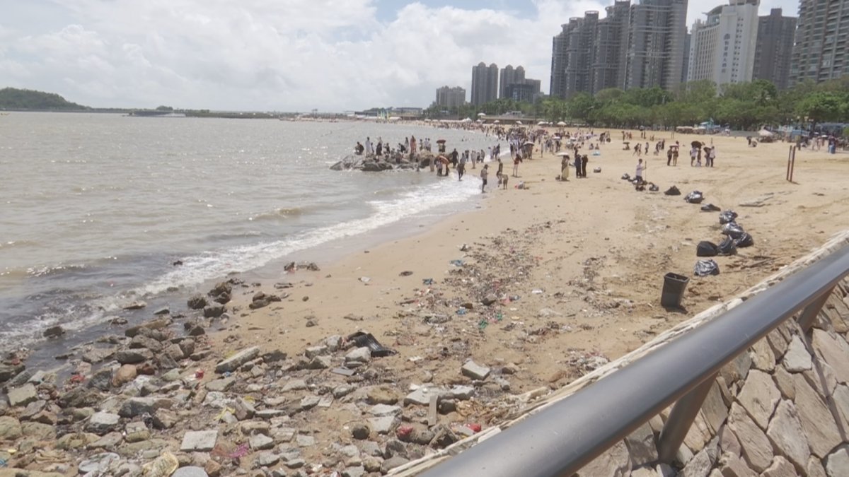 记者在香炉湾沙滩看到,不少市民在此休闲游玩,但沙滩上却散落着瓜子皮、雪糕棒、塑料瓶等垃圾。海面上漂浮着多个矿泉水瓶,更有游客不顾安全随意坐在栏杆上休息。在路边的公共长椅上,有游客直接躺卧睡觉,影响了他人休憩体验。