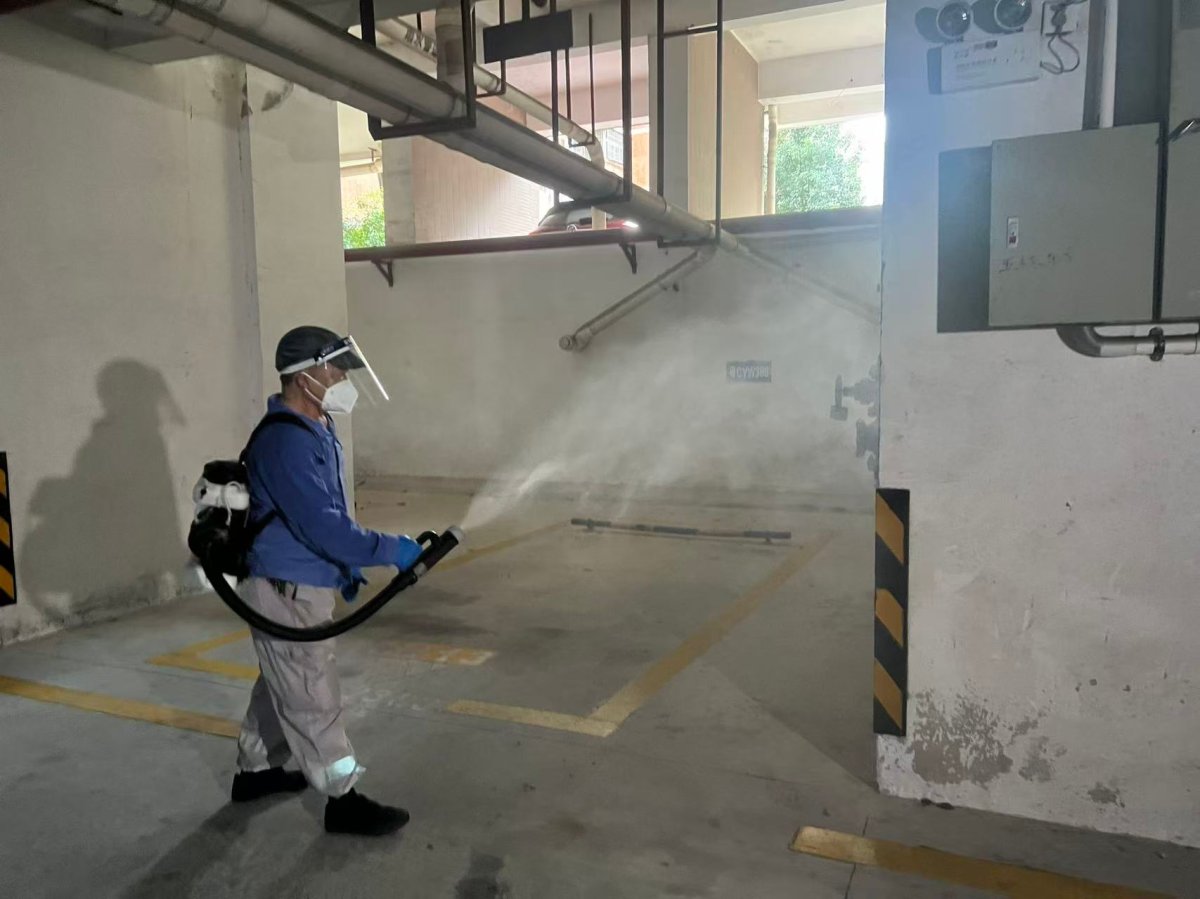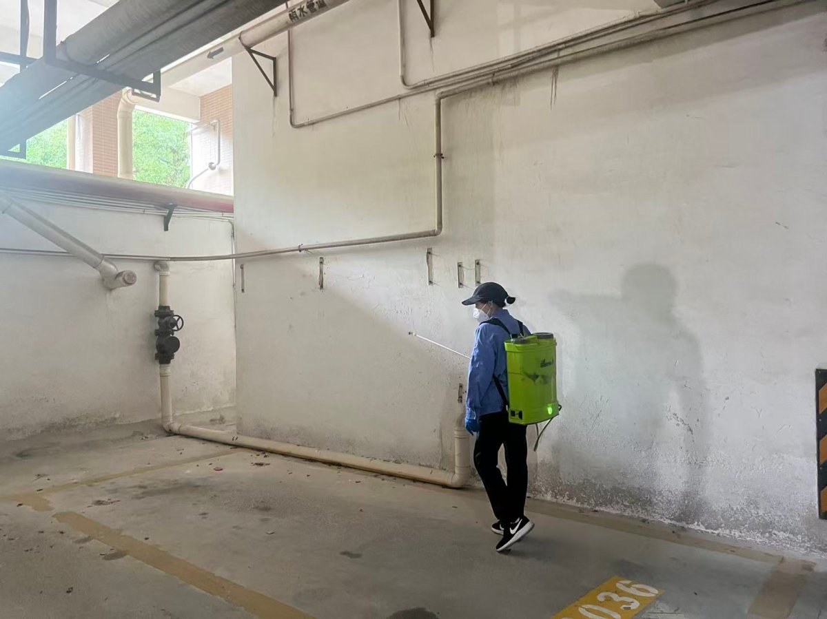 在红旗镇玉兰湖庭小区的地下停车场内,工作人员采用背负式喷雾器进行“地毯式”喷雾作业,药剂均匀喷洒在车库墙面、下水道、排水管道等地,确保全方位覆盖、无死角消杀,从源头减少蚊媒孳生。此次行动覆盖面广、力度大。据统计,红旗镇共出动专业消杀人员143人次,主要针对室内的地下车库、休闲区、垃圾中转站、下水道等蚊虫易孳生区域进行全面、细致的消杀作业。累计消杀面积2126500平方米,有效清除了蚊虫孳生地。