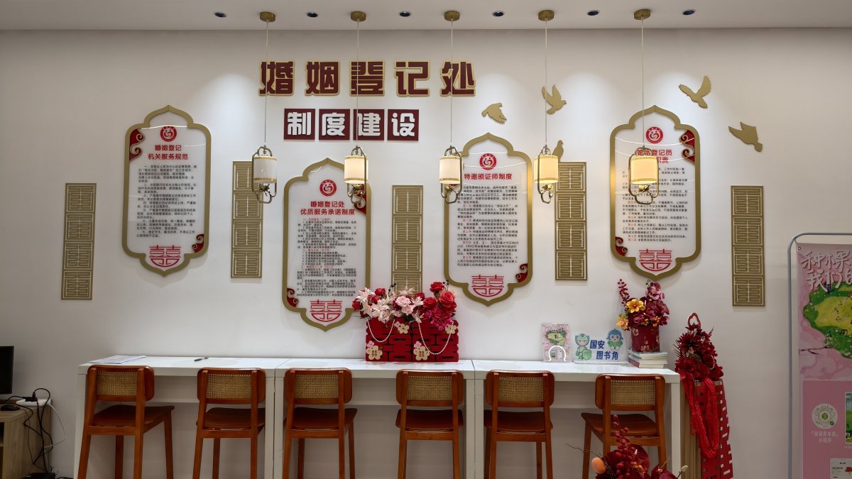 走进登记大厅,映入眼帘的是充满节日氛围的布置,三周年纪念主题元素与中秋、国庆装饰相映成趣,洋溢着温馨喜庆。当天,许多新人选择在这个特别的日子完成婚姻登记,既收获了双节的祝福,也与婚姻登记处的三周年纪念同频共振,留下了独特而难忘的记忆。
