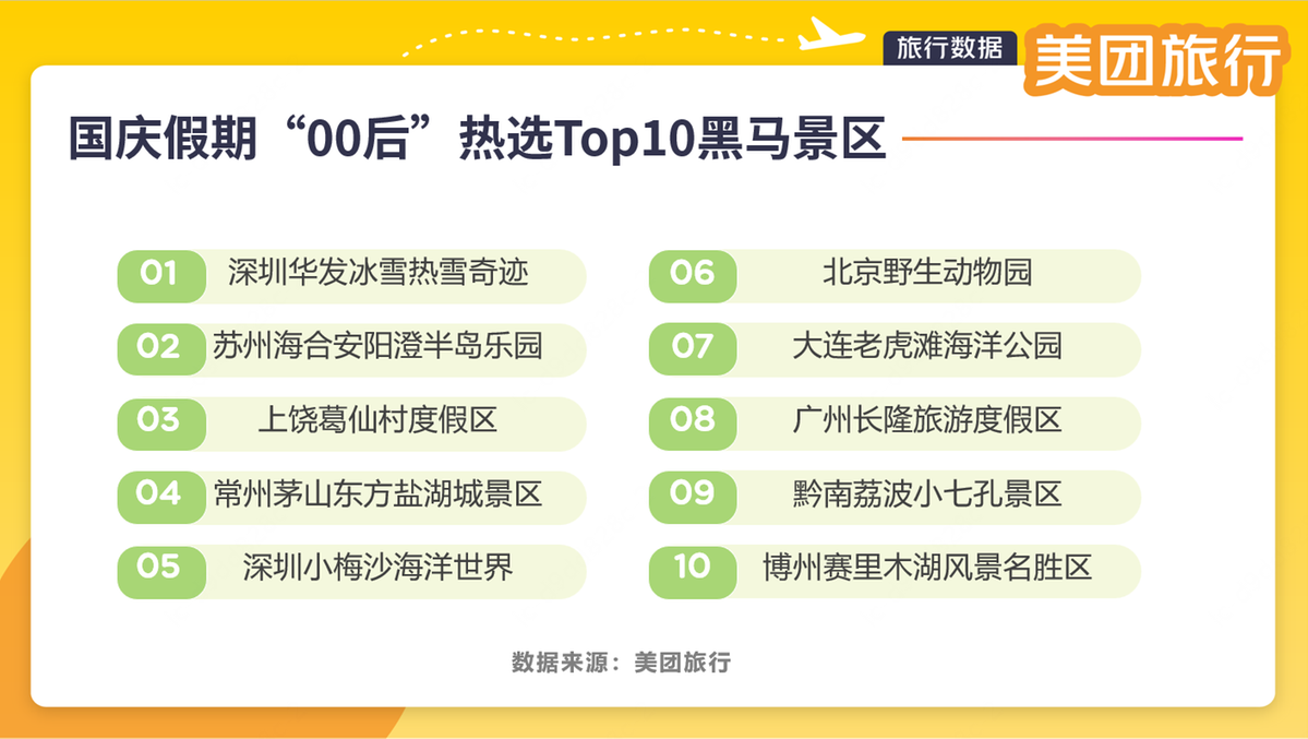 美团旅行发布数据显示,长达八天的假期,带动平台出行订单量较2024年国庆假期增长超30%。而来自大湾区的景点更是成为了国内外游客的热门目的地。美团旅行数据显示,国庆假期“00后”热选的Top10黑马景区中,深圳华发冰雪热雪奇迹排名全国第一,深圳小梅沙海洋世界、广州长隆旅游度假区也榜上有名。以长隆旅游度假区为例,受广东消费券刺激,国庆假期,景区的“00后”游客数量同比增长13%。