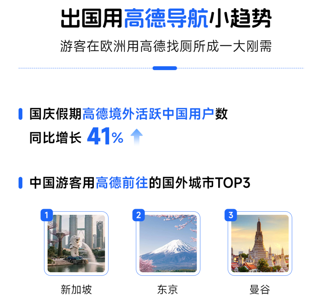 来自支付宝的数据则显示,国庆假期,中国游客足迹遍布全球,AQ成中东中亚非洲小众旅游目的地必备健康应用,假期境外AQ健康咨询量环比增长32%,出国旅游身体不适问国产AI成新趋势;中国游客去欧洲旅游找厕所成新刚需,假期在欧洲用高德规划导航“厕所”的次数同比增长220%;出国用支付宝付款正成为普遍现象,每2个出境游客中就有1个在用支付宝,支付宝消费趋势中,日韩东南亚消费仍火热,欧洲冷门目的地如希腊等则成消费新宠。