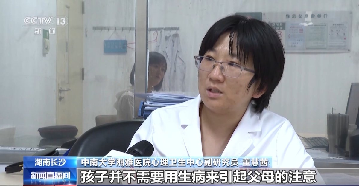 中南大学湘雅医院心理卫生中心副研究员董慧茜:心理学有一句话叫孩子替家庭在生病,孩子的问题其实反映了家庭的问题。家里的问题解决了,孩子并不需要用生病来引起父母的注意。