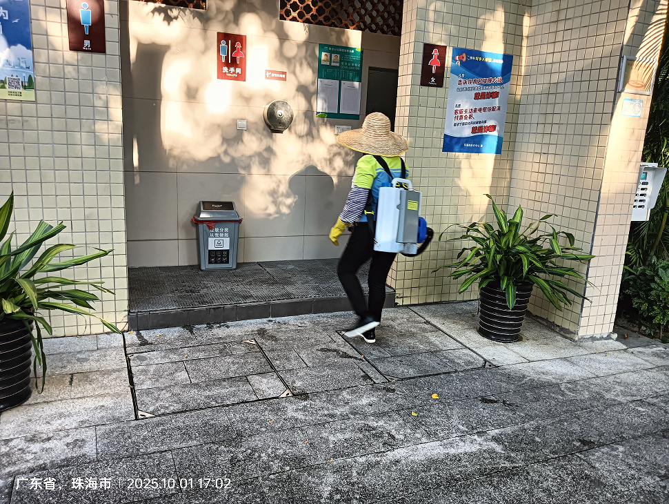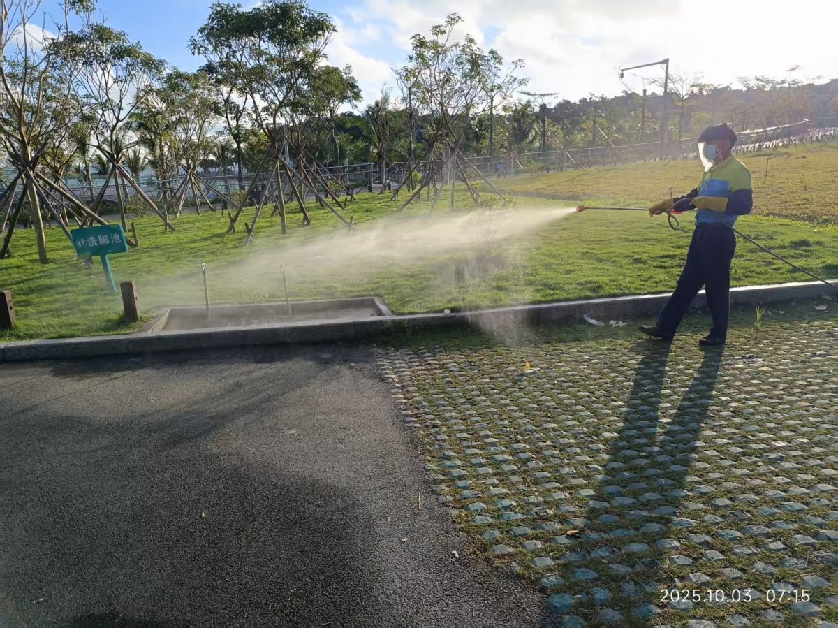 据了解,粤华、晟华园林公司严格按照市疾病预防控制中心印发的《基孔肯雅热、登革热疫点成蚊消杀操作指南》及“1130”防蚊灭蚊措施,即上下班1分钟清积水,每周1次卫生大扫除,每天3分钟排查孳生地,积极建设无蚊场所。市属公园全园每周开展一次全覆盖消杀,人员密集区域、公共洗手间及办公区域实行每日消杀;珠海大道沿线针对平沙驿站实行每日2次消杀,华发新城至南泉路口区域实行每日1次消杀。通过专业喷雾器和打药机,高效推进全域消杀,已累计开展消杀138次,使用含氯菊酯成分的低毒药剂13465毫升,出动工作人员157人次,清理绿化带垃圾6.162吨,确保环境安全无死角。