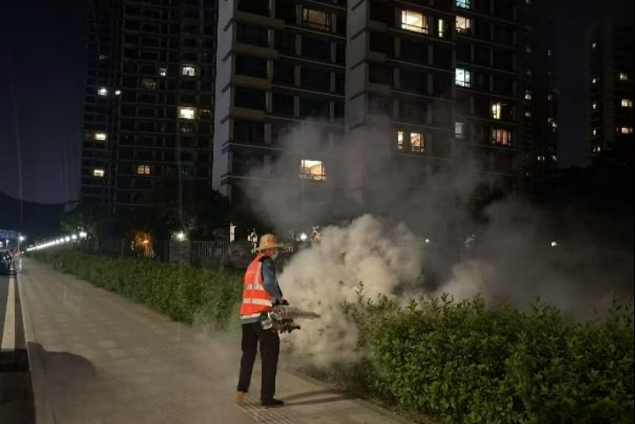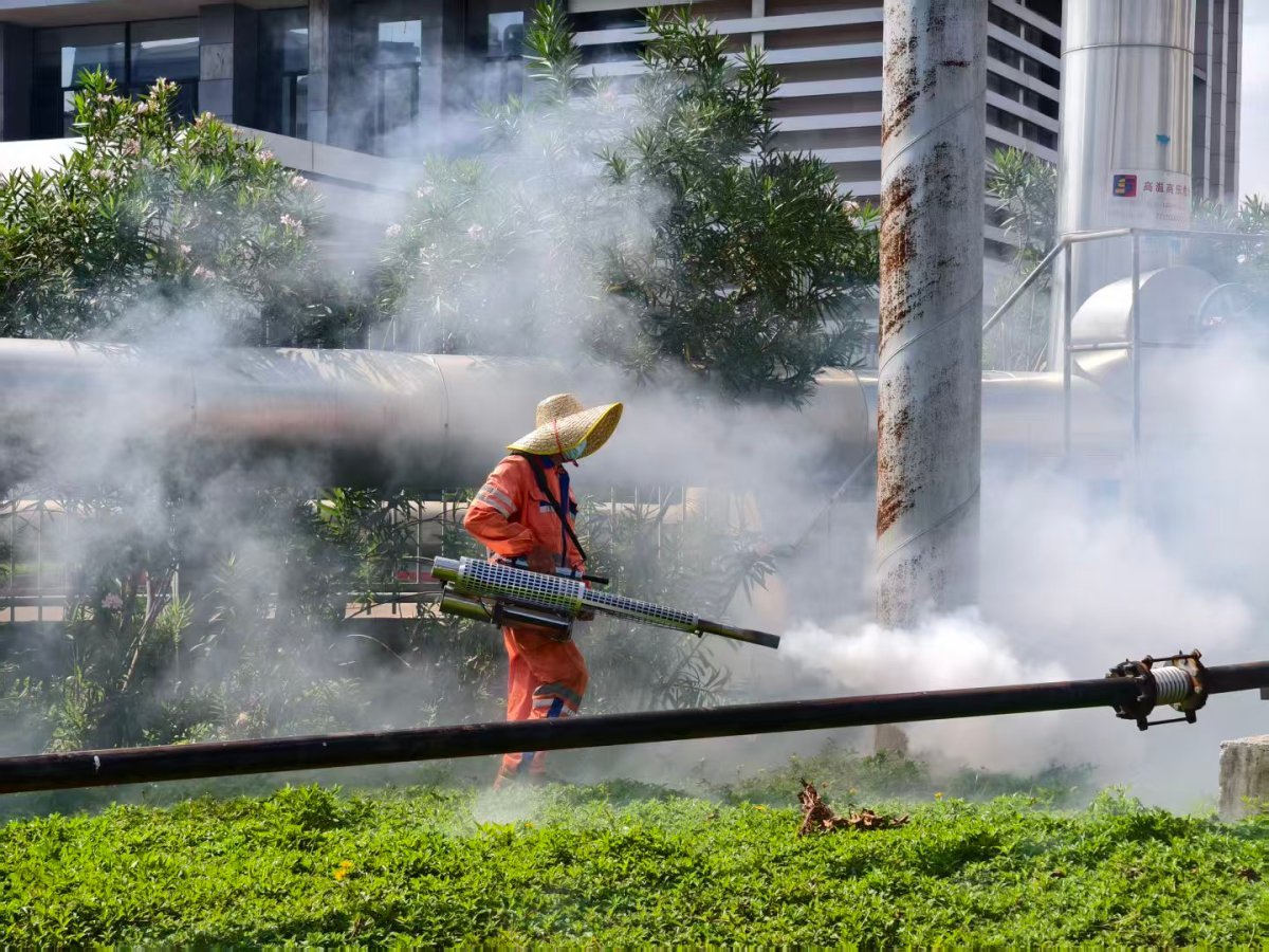 “我们每日开展喷洒作业,并对下水道投放灭蚊颗粒,每月还会聘请专业消杀公司进行一次全面处理,确保防控无死角。”该园区运营管理部经理梁嘉升介绍,园区面积约二十多万平方米,日常车流量大,消杀工作已成为常态化管理内容。
