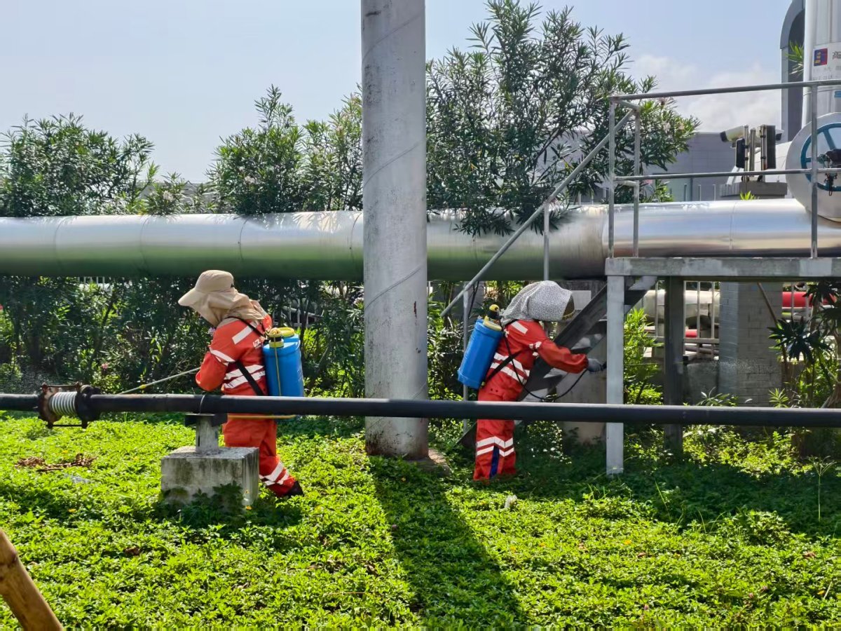 珠海经开市政园林工程有限公司副总经理洪世荣介绍,近期台风天气给园区带来很多海上垃圾,易形成蚊虫孳生环境。为此,公司连日来对石油化工区、精细化工区、海洋装备区、石化仓储区及高栏大道沿线区域等开展了全面消杀。